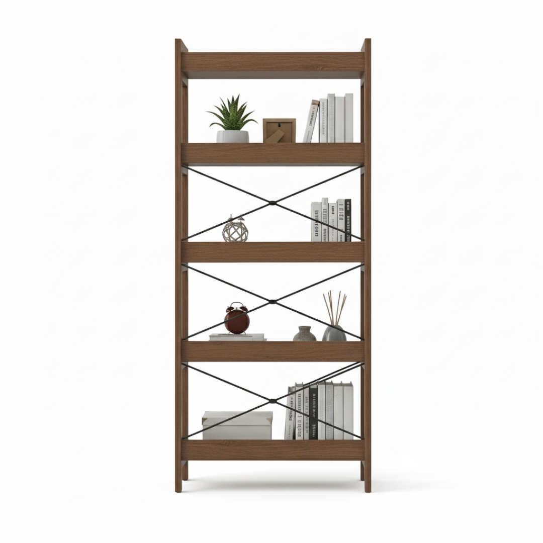 SKU: AV0234 Category: Storage & Media Tags: 5-shelf bookcase, freestanding shelving, home office organizer, industrial style bookshelf, living room storage unit, modern bookshelf, tall display shelf